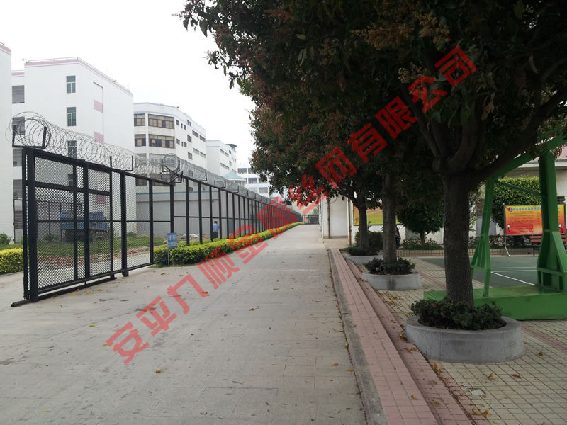 監獄防護網材質一般采用Q195低碳鋼絲焊接成所需尺寸的網片大小,一般每片規格有2米x2.5米,2.5米x3米,1.8米x2米等各種尺寸,客戶可根據要求選購,成型的網片一般都是沒有經過表面處理的黑片,有些是需要焊接邊框的,有些直接邊絲焊接成雙絲的,在經pvc浸塑處理,PVC浸塑是通過加熱浸塑液放入監獄防護網的黑絲網片及立柱使之冷卻后塑料包覆在防護網表面。這種工藝有無需模具、加工成本低、成型容易、具有豐富的色彩,良好的防護性,優異的耐寒保溫性以及抗酸堿性?等特點被廣范使用,顏色可選草綠色,墨綠色這兩款是最常用的。